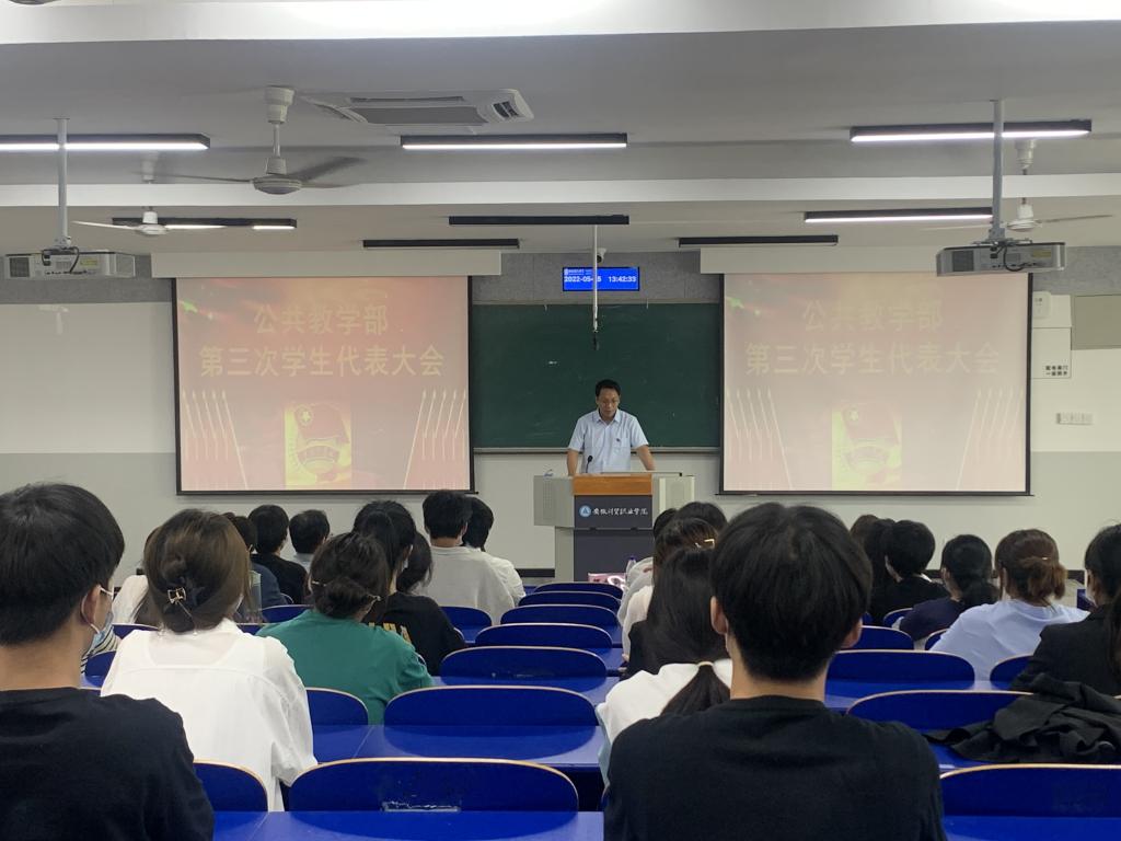5月25日下午,公共教学部第三次学生代表大会在6202教室召开。公共教学部党总支副书记何步新、副主任陈伟、办公室主任杨志祥、团总支书记赵慧以及教师代表出席会议,共有学生代表45人参加本次大会。