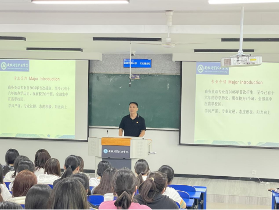 为帮助2022级商务英语专业学生尽快适应大学生活,更好地规划未来三年的专业学习,公共教学部外语教研室于9月21日举行了2022级商英新生专业教育讲座。公共教学部党总支副书记何步新、外语教研室副主任宁蓓,商务英语专业全体专任教师、校企合作单位高管及商务英语专业优秀毕业生出席了讲座。