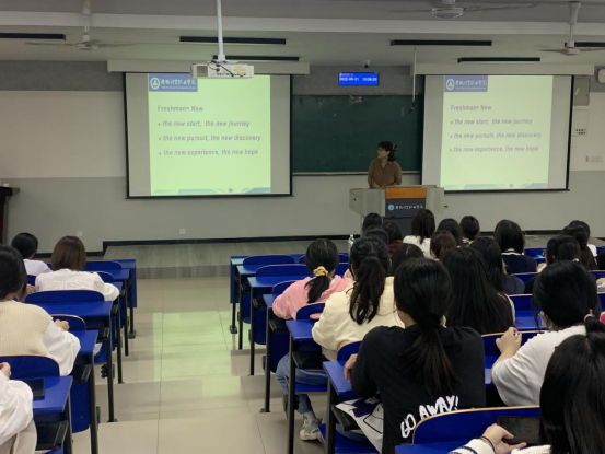 讲座中,何步新首先鼓励全体新生树立坚定的奋斗目标,珍惜三年的学习时光,努力夯实专业基础,为未来筑牢基石。作为商务英语专业长期合作的校企合作单位,合肥轩昂教育科技咨询有限公司董事长王磊结合自身的创业经历介绍了行业发展趋势,帮助新生认清职业发展方向,做好职业规划。宁蓓向全体新生介绍了我校商务英语专业整体情况,优秀毕业生代表2015级章敏、2018级胡鸿杨同学分别通过视频方式介绍了个人学习经历,进一步激励了广大新生的学习积极性。