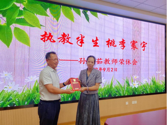 欢送会上,刘银国校长为孙青茹老师颁发了退休证书,教师代表也用鲜花和礼物表达了对孙青茹老师荣休的祝福,气氛温馨热烈。