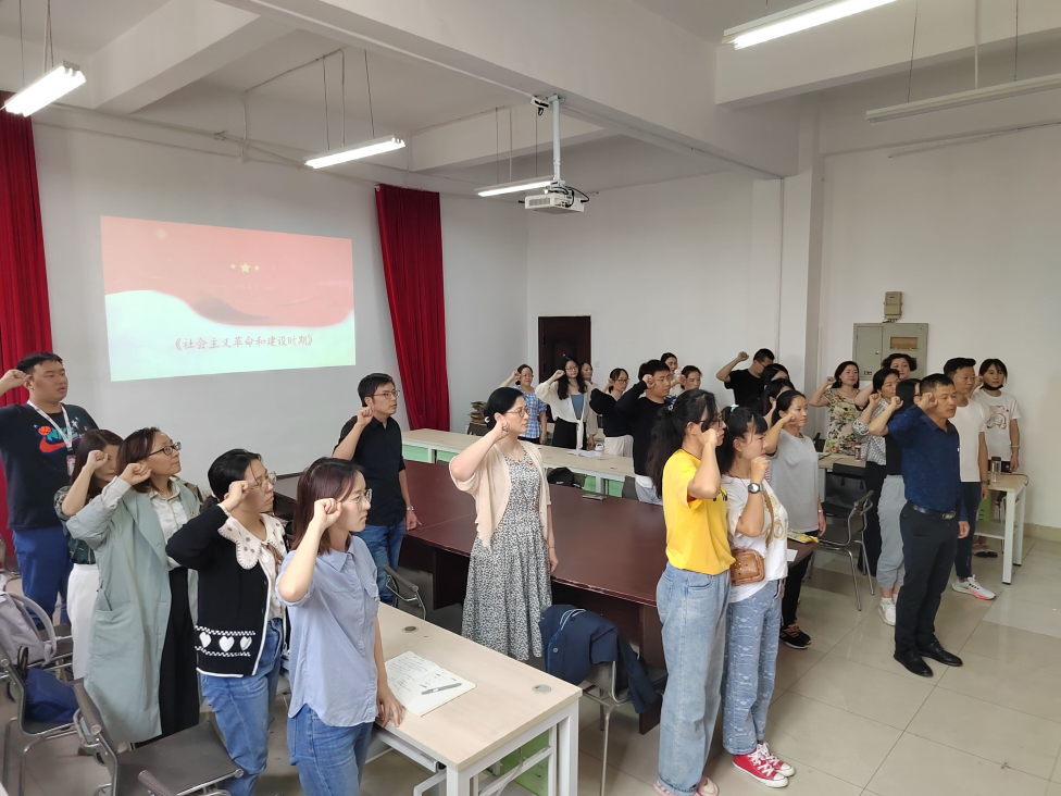 在党的二十大召开在即,公共教学部教师党支部于928日在校办公楼208党员活动室,开展了一次题为《学百年党史,激奋进力量》的党课学习。课前全体党员在党旗前庄严重温入党誓词。