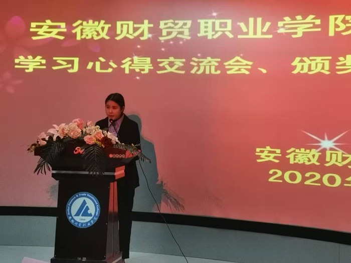 经过评委组审议,旅游1901班胡文婷同学交流报告荣获一等奖,会计1904班赵欢欢、营销1902马秋悦同学荣获二等奖,商英1901班武雨晴、移动1902班郑超、农金1902班张翕、连锁1903班倪彩凤、审计1904班王清林和环艺1902张新春同学荣获三等奖。大会依次对审计1901班等12个“先进学习小组”,赵欢欢等37名“优秀会员”及学习心得交流会获奖同学进行了表彰。