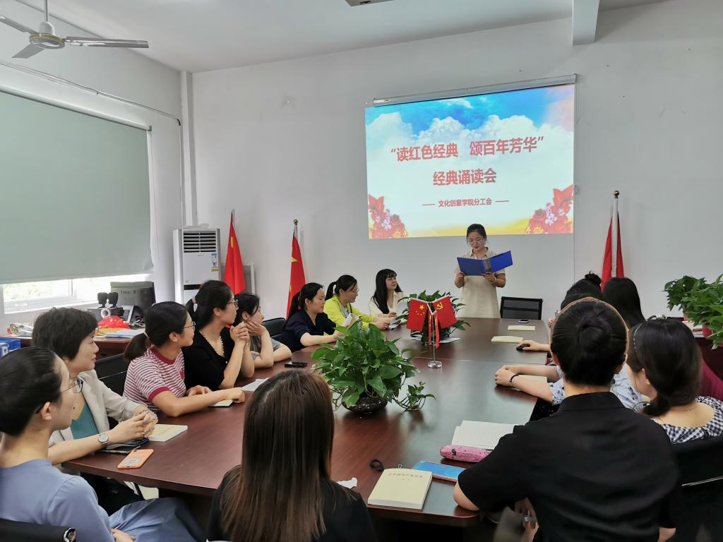 “读红色经典,颂百年芳华”红色经典诵读活动。财会金融学院分工会和文化创意学院分工会举办“学党史,强信念,巾帼建新功”“读红色经典,颂百年芳华”红色经典诵读活动,《赵一曼写给儿子的信》《谁是最可爱的人》《青春之歌》《可爱的中国》《党旗颂》《不朽》《新时代中国共产党的使命》《我们爱你啊,中国》等红色经典篇目,深情回顾了党的百年光辉历程,礼赞党的伟大成就,抒发了对英雄的敬仰、对党的热爱、对祖国的祝福,心灵受到了震撼,思想得到了洗礼,让党史学习教育“声”入人心,致敬光辉百年,不忘初心使命,赓续红色精神,走好新时代的长征路。