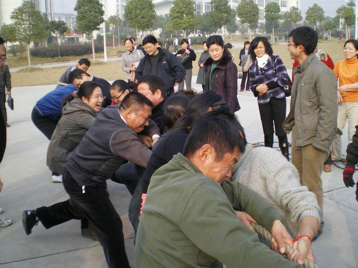 在运动会所有比赛项目中,拔河是参与度最高的项目,拔河双方要求参赛人员12人,6男6女,各工会小组的主要领导纷纷上阵,有在队伍前列出力拔河的,有安排队员提前练习的,有全程喊号子助威的,一时间,比赛的竞技气氛达到了顶点。各工会小组成员高喊加油,鼓掌助威;拔河队员也是全力付出,团结协作……现场不时发出阵阵笑声。最终,学生处工会小组赢得了冠军,在获得胜利的一霎那,全场教职工都发出了欢呼声,邵主任还开玩笑地说:“根本没使劲!”