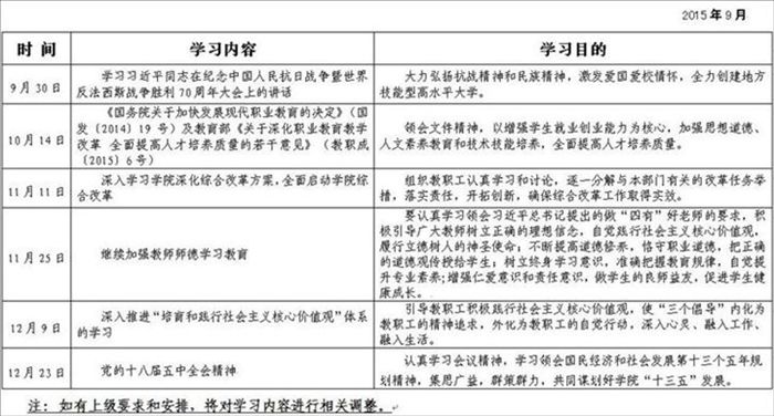 按照学院工作安排,现将2015年下半年全院教职工政治理论学习工作安排如下: