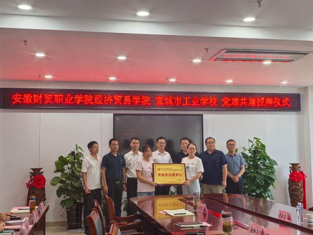 随后,王海龙参加了经济贸易学院党总支和宣城市工业学校的党建共建授牌仪式。王海龙指出,党建共建是加强党的领导、推进事业高质量发展的重要举措和有效形式,全面加强党的建设,以高质量党建引领人才培养工作是学校发展道路上的使命与责任。