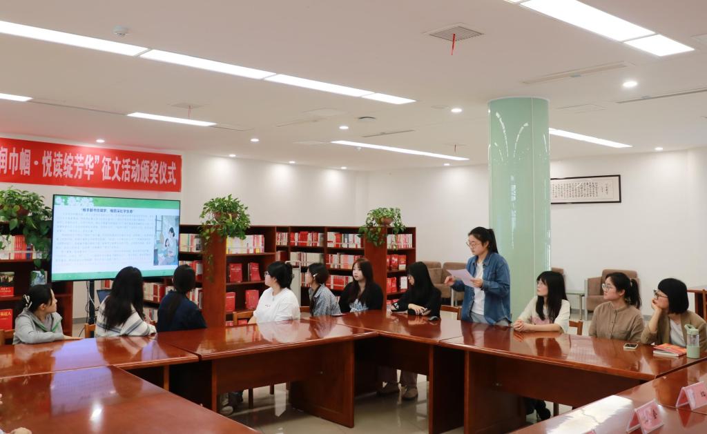 4月23日,学校工会、妇联在翡翠校区图书馆红色阅读空间举办幸福沙龙读书分享会暨“书香润巾帼·悦读绽芳华”征文活动颁奖仪式。学校妇联主席罗虹出席活动。工会、妇联、图书馆相关负责人,征文获奖师生代表参加活动。