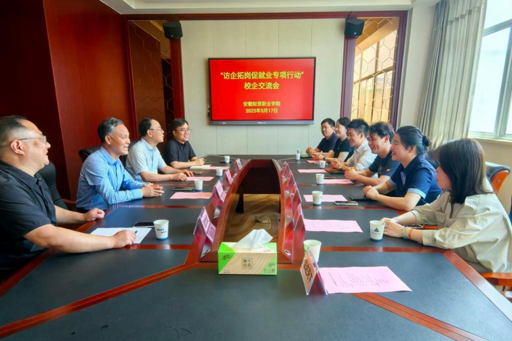 5月17日上午,学校党委书记张志祥,党委副书记、副校长何翔参加访企拓岗促就业专项行动校企交流会,经济贸易学院相关负责人参加会议。