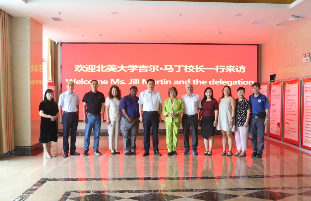 9月8日,美国北美大学校长吉尔·马丁女士率代表团访校,就合作办学展开交流。我校党委副书记、校长吴成颂出席会议,教务处及信息工程学院、未来技术学院相关负责人参与座谈。