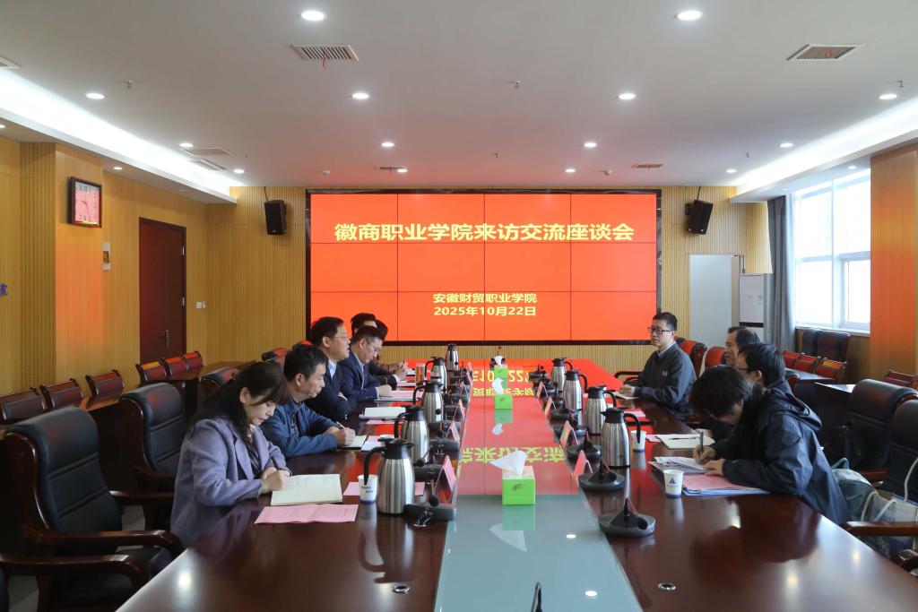 10月22日,徽商职业学院党委副书记、校长丁仁船率队来我校,就中外合作办学工作进行专题调研。学校党委副书记、校长吴成颂,党委委员、副校长王海龙出席会议。教务处、公共教学部有关负责人参加座谈。