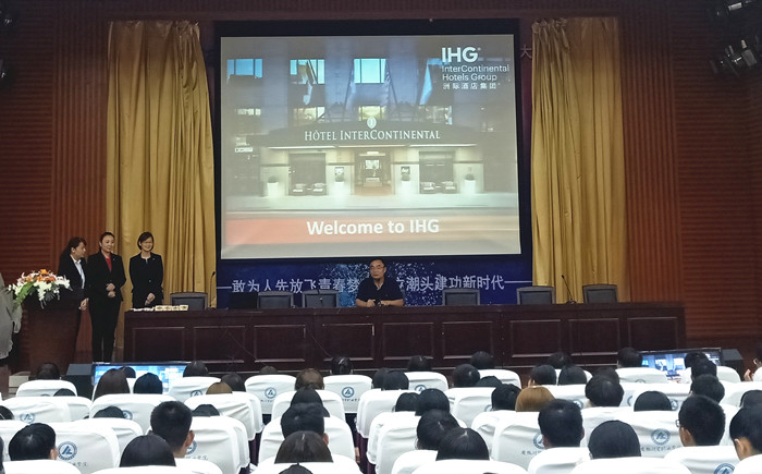 合肥洲际酒店的人力资源部经理王韦,为酒店管理专业新生做了比较清晰、全面的行业分析,并从个体发展角度对职业生涯规划做了详细介绍,为同学们进一步了解专业、热爱专业做好铺垫,合肥融侨皇冠酒店人力资源经理钱朝霞,合肥黄山皇冠酒店人力资源经理戴清华还让同学们分享了洲际酒店集团的烘焙食品。随后,院长刘葆对学校做了简要介绍并就同学们关心的几个问题:职业教育的内涵、如何进行职业规划以及酒店管理专业展开讲解。刘葆重点介绍了酒店管理专业人才培养方案、开设的课程、技能大赛、实习实训以及就业等主要内容,他指出我校立德树人,三全育人,培养高素质技能型人才,同学们树立正确的世界观、人生观、价值观,要进图书馆和运动场,同学之间不仅要相互交流、探讨专业知识,要培养吃苦耐劳的品质,明确自己的奋斗目标,不断的积累、拓宽自己的知识面,真正成为新时代社会主义的建设者和接班人。