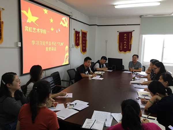 9月27日下午,宾虹艺术学院党总支召开政治理论专题学习会议,深入学习贯彻习近平总书记“7·26”重要讲话精神。会议由宾虹艺术学院党总支副书记张伟主持,全体党员老师参加学习会。