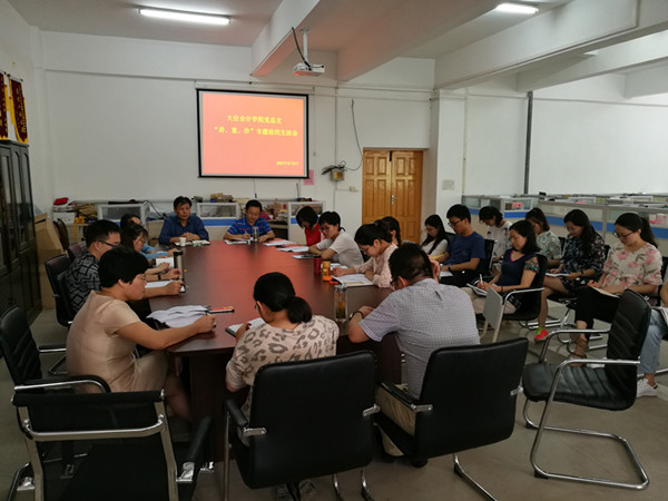 9月5日上午,大位会计学院党总支组织召开了“讲政治、重规矩、作表率”专题组织生活会。学院副院长胡戴新以一名普通党员身份出席了会议。党总支副书记张少兵主持了会议,出席本次会议的有全体党总支委员和党员共计31人。