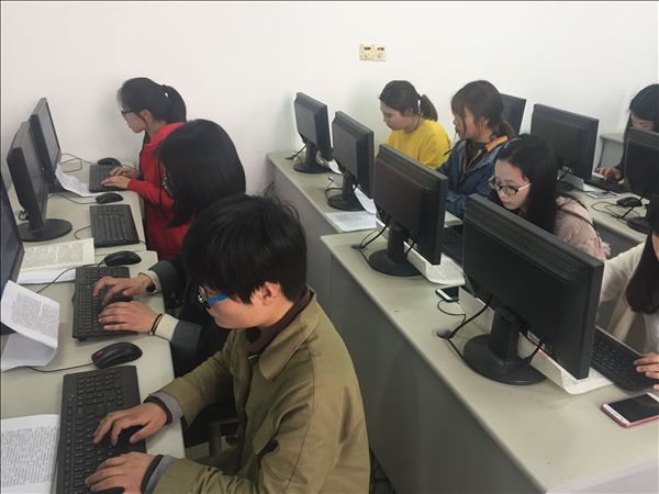 本次比赛借鉴2017年安徽省职业院校技能大赛(高职组)文秘速录专业技能竞赛规程,根据学院设备实际情况,将比赛分为极限看打、实时听打与模拟办公管理三个赛项,参赛同学选择使用亚伟中文速录机或标准电脑键盘作为比赛的文字录入工具。参赛同学提前到教室签到准备,比赛中同学们认真专注、运指如飞,表现出娴熟的录入技巧。
