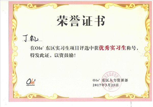 近日,行知管理学院从连锁专业华润万家超市有限公司教师工作站获知,在上海华润万家超市有限公司实习的2014级连锁经营管理专业丁凯同学工作期间拾金不昧,曾受到企业的通报嘉奖,并被企业评为“优秀实习生”。