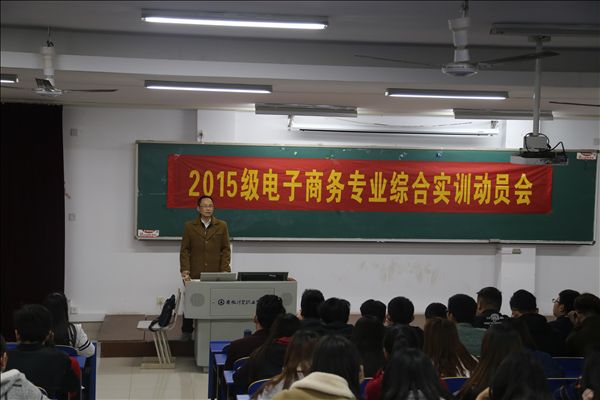 本学期,2015级电子商务专业课程植入专业综合实训,实训时间为40天。3月14日,雪岩贸易学院在6103教室召开电子商务专业实训动员会。