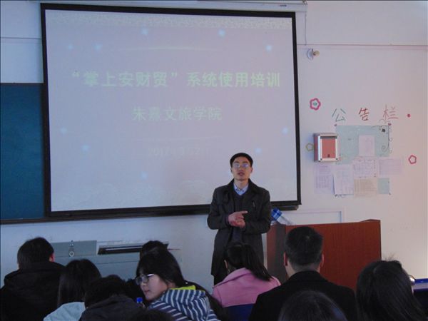 本学期,由云桂信息学院开发的“掌上安财贸” 日常管理系统在各二级学院推广使用,朱熹文旅学院、雪岩贸易学院等二级学院就系统的使用功能在教学秘书、辅导员老师、各班级学生中间进行了培训指导。