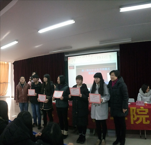 12月28日,大位会计学院第三届会计文化节闭幕式暨颁奖仪式在6102教室举行。大位会计学院副院长姚云霞,党总支副书记张少兵,党总支副书记雷青梅,副院长李红梅出席闭幕式,各教研室主任及文化节相关项目的负责老师及学生代表参加了会议。