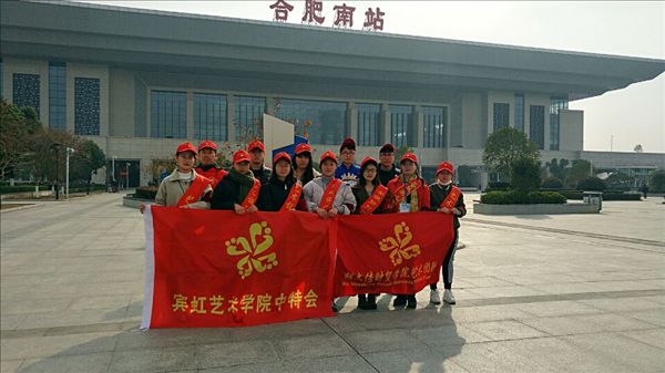 宾虹艺术学院学生秘书王思、中特会会长褚凤凤、秘书长耿直参加了合肥高铁南站志愿服务联合会“诚挚携手,和谐服务”志愿活动交流会。高铁南站志愿服务联合会会长裴慧丽和高铁南站负责人杜明生科长向我院志愿者表示肯定和感谢。宾虹艺术学院经与高铁南站协商,表示除了志愿服务外,还将为高铁南站提供写作、礼仪、文秘三项内容的培训,并从今年11月份开始,每周一下午和每周五上午,分别派出10名志愿者参与和指导高铁南站的志愿服务活动。