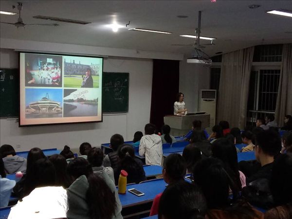 讲座地点为5102教室。李惠静老师结合她留学期间参加公益活动的所见、所闻、所感,介绍了自己参加的国外志愿服务、国外个人募捐、国外公益创业等活动的精彩瞬间。李老师表示要提高自己的知识与能力修养,一要认真学习,二要与好书为伴。她鼓励英语协会创办英语角,多说英语,表示 “It's never too later to learn English well!” 。