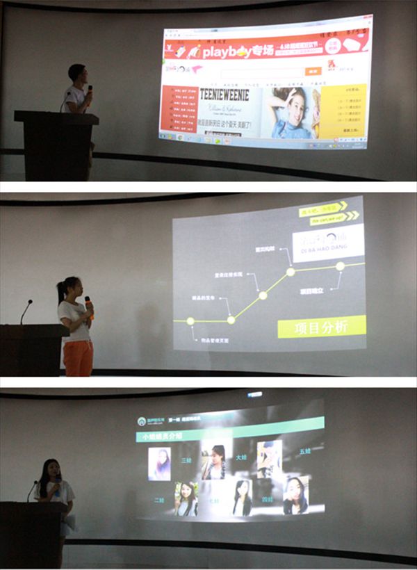 汇报会上,表现优异的四个小组从网页制作和网站开发两个方面汇报了一周来小组实训的成果,第一组“战斗吧,少年”队展示的项目为“第八号当铺”,第二组“超能陆战队”展示的项目为“葫芦娃乐博家具公司”,第三组“RunningBall”队展示的项目为“轻松一刻”,第四组“荣耀战队”展示的项目为“脚丫网”。每个小组的项目立意新颖、贴近实际、可操作性强,得到了与会的领导和老师的一致认可。