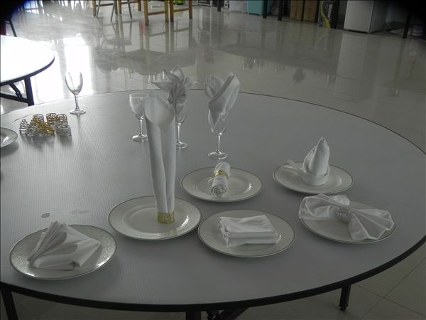 参赛选手通过初赛的闭卷答题后,成绩优秀的前十名选手进入决赛。决赛要求选手在规定时间内完成8种餐巾花型,并需要对花型进行简要的解说。决赛中,各位选手折花手法娴熟,拉、推、折、叠、捏、整等各种动作一气呵成。杯花、盘花各领风骚,整洁、雪白的餐巾在选手们的手中不断变换造型,展示出了餐巾平凡背后的魅力。