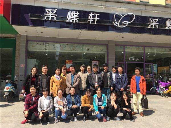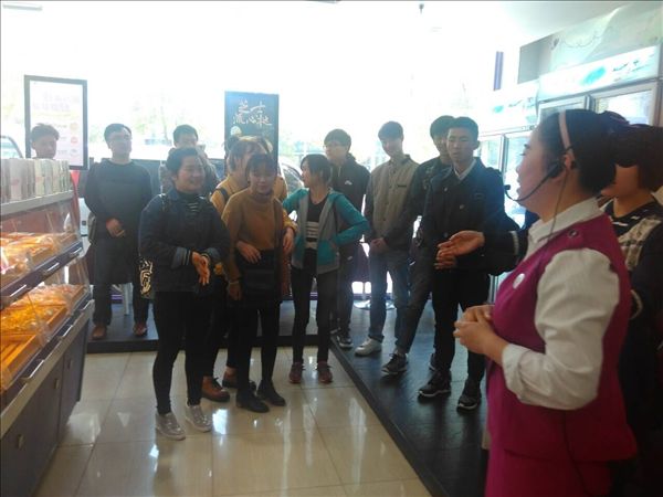 3月28日上午, 行知管理学院副院长方春龙、工商企业管理专业教研室主任胡芳及相关专业教师带领2014级“采蝶轩顶岗实习订单班”前往安徽采蝶轩集团滨湖振徽苑和世纪金源店参观,这是合作企业安徽采蝶轩集团第一次为该班44位同学开展的企业实践培训活动,由此,工商管理专业正式开启顶岗实习订单模式。