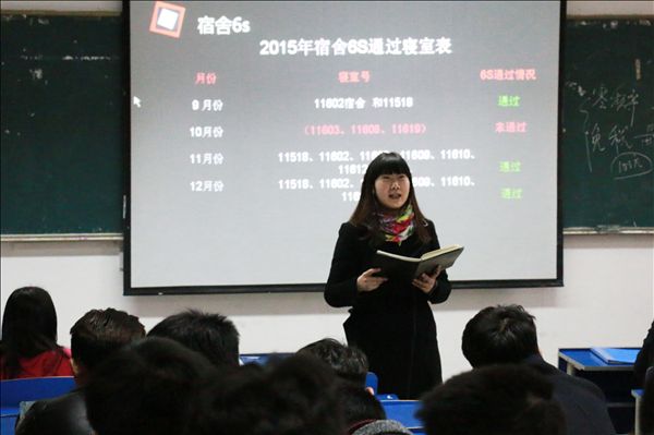 新学期伊始,艺术设计系以“整理、整顿、清扫、清洁、安全、素养”的宿舍“6S”认证为重点,突出强调了宿舍的安全文明。2月29日和3月1日,该系分别召开男女生寝室长会议,系党总支副书记丁蓉做第九个安全卫生月动员讲话。