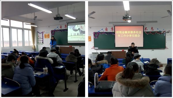 1月6日下午,财税金融系2014-2015学年度第二学期赴企业挂职的凌云老师,2015年暑期参加省培的周阳、王珂、李健老师,2015年暑期参加社会服务活动的王珂及参与粮安工程”专项审计的刘阳老师,本学期指导学生竞赛的周阳、查静、刘岚老师分别同大家交流经验收获和学习心得分享活动在2409教室进行。