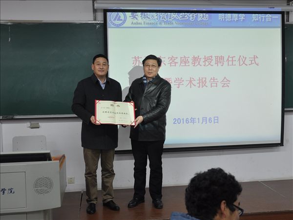 1月6日下午,行知管理学院举办“冷链物流前沿信息”报告会,主讲人徽和合冷链食品股份有限公司副总经理苏卫东受聘担任我院的客座教授。副院长胡戴新出席报告会。