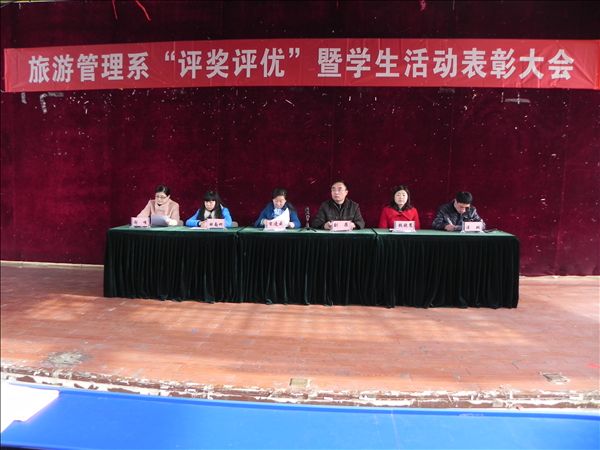 12月30号中午,旅游管理系2015年评奖评优暨学生活动表彰大会在5103教室举行。系刘葆主任、党总支副书记宋凌云、商务英语教研室谢峰主任、公共英语教研主任田南竹、旅游管理教研室主任钱晓慧、2015级新生辅导员出席了表彰大会,学生秘书汪双主持会议。