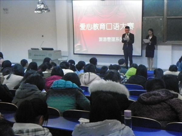 身负关爱与责任,心系感恩与回馈。12月9日下午,旅游管理系“爱心口语大赛”在6103教室举行。系党总支副书记宋凌云、学生秘书汪双及专职辅导员孙俊峰、王亚丽等老师担任评委。