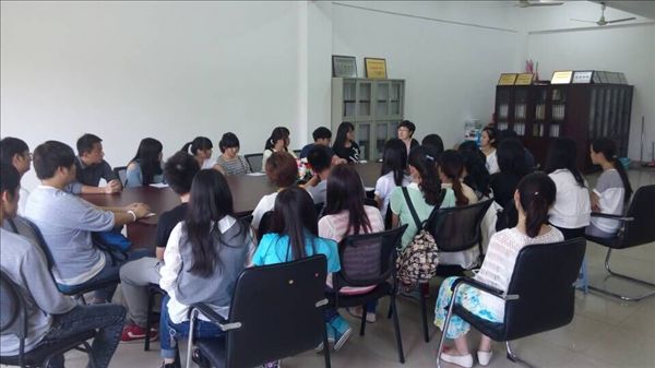 6月5日中午,雪岩贸易学院党总支副书记胡宏萱主持召开该院资助育人工作座谈会,2013级和2014级各班受助学生代表参加了会议。