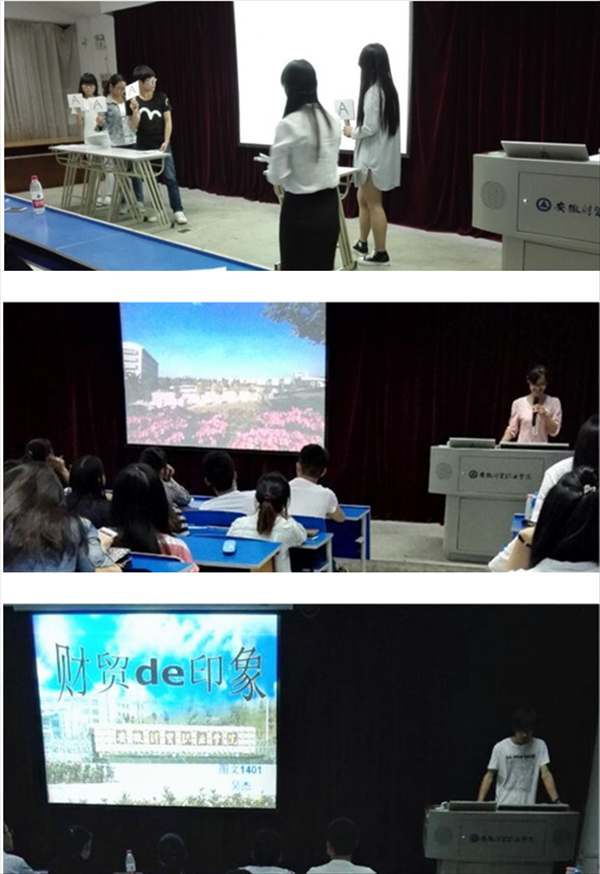 这次“财贸映像”大赛分两个环节,第一部分是校园美景图片展示,第二部分是校史知识竞答。27位同学,不仅对提问的校史知识对答如流,而且满怀对学校的深情,图说展示了自己用眼睛和心灵寻找到的校园美景,诠释了每个人心中不一样的安财贸。经纪1401张燕同学以技高一筹的拍摄和真情流露的解说打动了现场观众和评委,获得一等奖;图文1401刘洒、杨佳佳获二等奖,营销1401禹贤梅,图文1401韩颖,汪丹获三等奖。