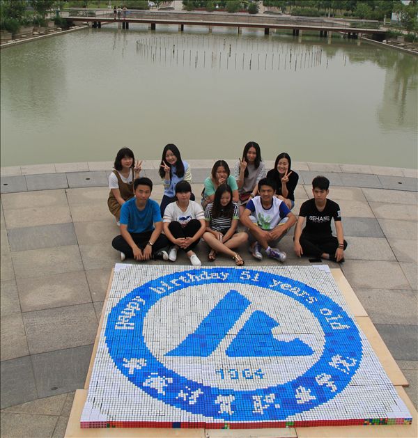 活动作为第十二届校园文化艺术节的项目之一,展现了手部极限运动和魔方艺术的完美结合。这次拼接出的魔方校徽的原创者是来自学院魔方协会的8位同学,他们用1640个魔方,花了4个晚上的时间完成了这个特殊的校徽。今年是学院建校51周年,8位同学表示,魔方拼校徽,我们用自己最爱的方式向亲爱的学院致敬,祝福学院蒸蒸日上、桃李满天下。