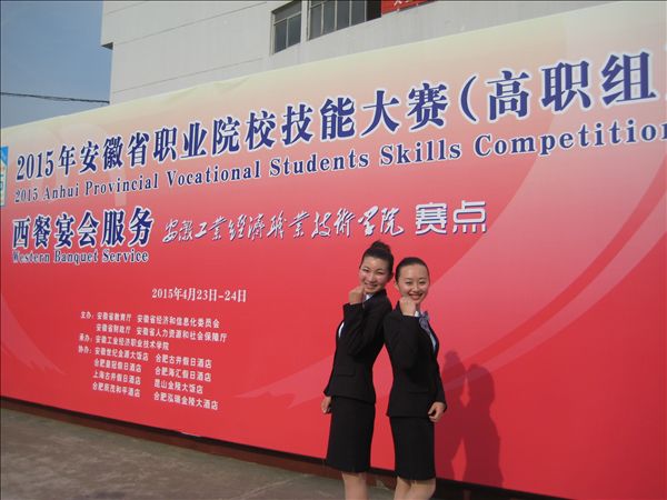 2015年安徽省职业院校技能大赛(高职组)西餐宴会服务赛项于4月23日至24日在安徽工业经济职业技术学院举行,省内17所职业院校的33名选手参加比赛。我院酒店管理专业程凯丽、张雅群两位同学位列第四和第六名,表现优异。