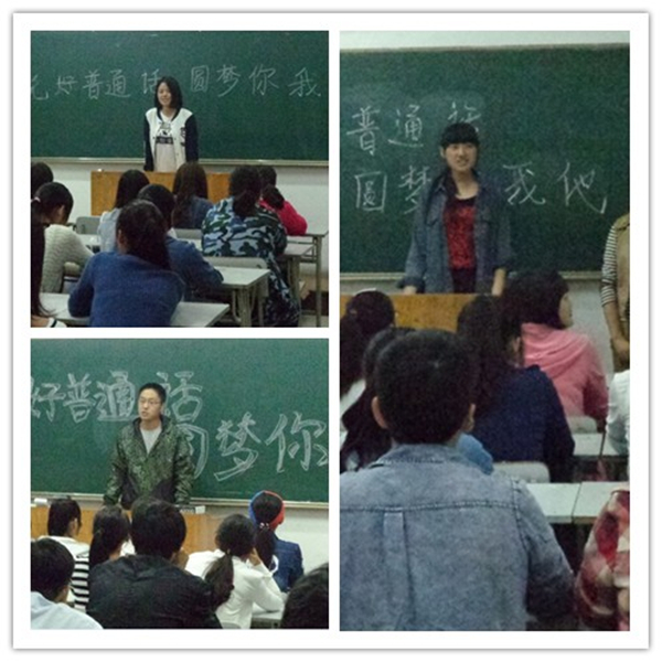 普通话是中国的官方语言,推广普通话、说好普通话是每个中国公民的责任和义务。10月13日晚,行知管理学院将口语训练主题定为“说好普通话 圆梦你我他”,鼓励在校大学生用普通话交流。