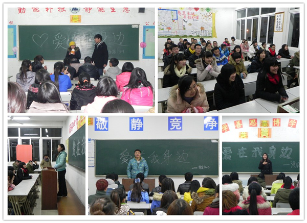 12月24日晚,旅游管理系在2013级8个新生班级组织开展了“爱在我身边”爱心教育主题口语训练活动。
