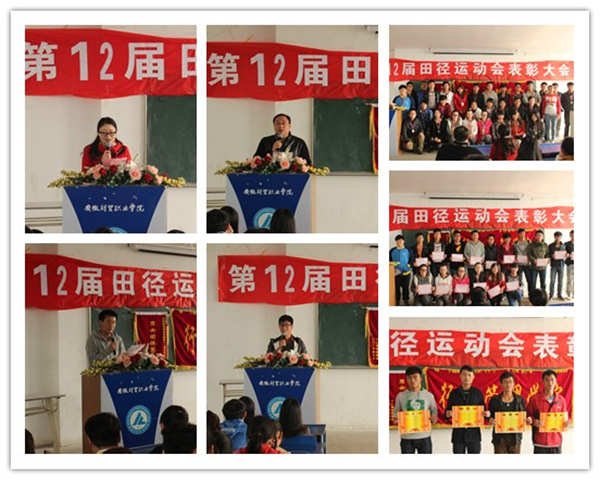 刘大俊宣读了优秀运动员名单及优秀班级名单,该院学生会体育部部长朱伟和连锁1302班孙婷、连锁1303班刘立志2位优秀运动员代表分别作了发言。