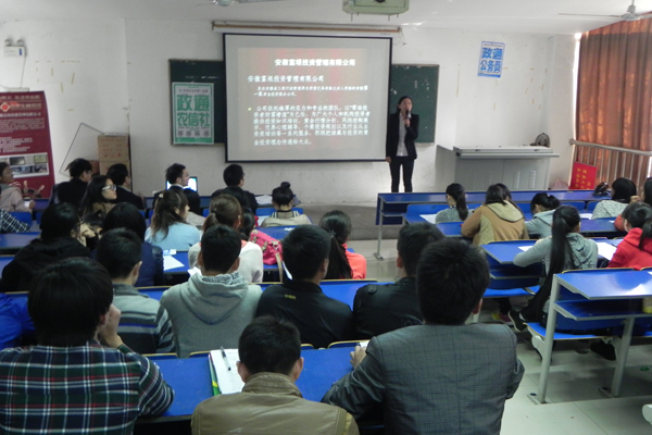 11月4日中午,财税金融系举办了2014届投资理财专业毕业生招聘会,安徽富垠投资管理有限公司等企业前来招聘,部分2014届投资理财专业方向毕业生参加了招聘会。