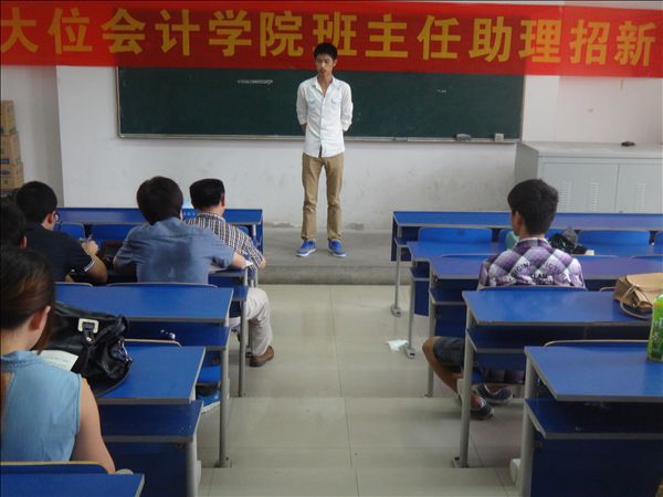 6月18日中午,大位会计学院在5102教室进行2013级班主任助理的最后一轮选拔工作。党总支书记陶云龙,学生秘书武军,专职辅导员齐杰、马兰燕、王繁担任评委。