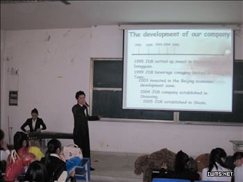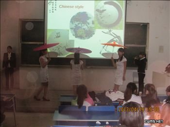 4月19日,国商2011级144名同学分成21个组在5302教室举办英文产品发布会,汇报实训成果。在专业老师马诗琴、张琼、刘琦、尚海燕的指导下,同学们完成了市场调研、资金筹集、产品采购、广告宣传、英文产品发布会准备等全部工作,最终用全真模拟的方式展现准备内容。发布会中,同学们“八仙过海各显神通”,依据产品特色穿插了小品、歌舞、萨克斯古筝现场演奏、当场作画书法等各种形式的才艺表演,高潮迭起。