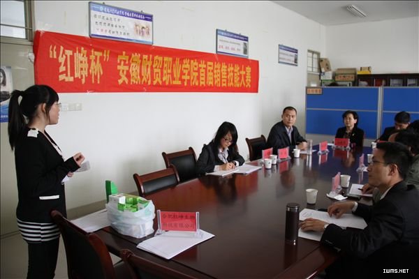 4月25日,在学院2012年职业技能节的最后一天,首届“红峥杯”销售技能大赛在营销与策划专业实训室顺利进行了决赛。大赛冠名企业合肥红峥生物科技有限公司董事长童长远先生、学院党委副书记胡善珍教授及雪岩贸易学院营销与策划专业全体教师担任本次大赛决赛答辩的评委。全院总计73名选手报名参加比赛,共有10名同学提交的“丝瓜庄园”产品市场推广方案顺利胜出,进入决赛。