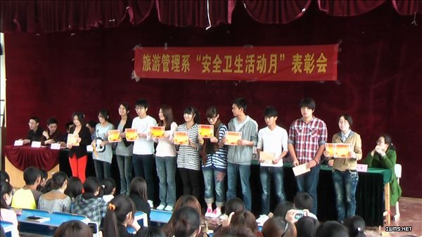 旅游1101班、酒店1101班符合优胜班级评选条件,在表彰会上也受到了表彰。史亚男等12名团学干部和2012年党员发展对象,在第五届安全卫生月活动中“一对一”对口帮扶宿舍,付出了辛勤劳动汗水,被评为“安全卫生活动活动积极分子”。