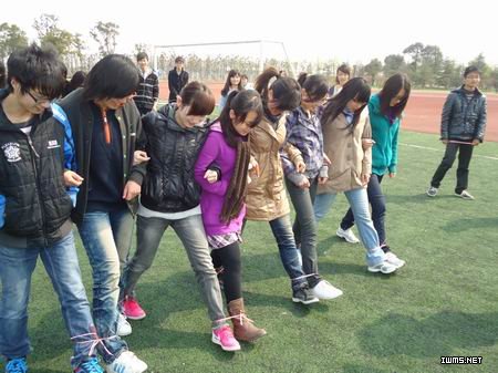 比赛时间设在每天的中午时段,各参赛班级选出八人为一组,用绳子将小组成员的脚绑在一起,两组各八人齐心协力,以足球场中场线为起点,采取三局两胜制,先到终点即可获胜。旅游1101班和商英1101班的对决拉开了比赛的帷幕。经过四天预赛复赛的竞争角逐后,商英1101班技胜一筹荣获第一名,酒店1102班、酒店1103班(国际班)两只参赛队伍分别获得第二、第三名。