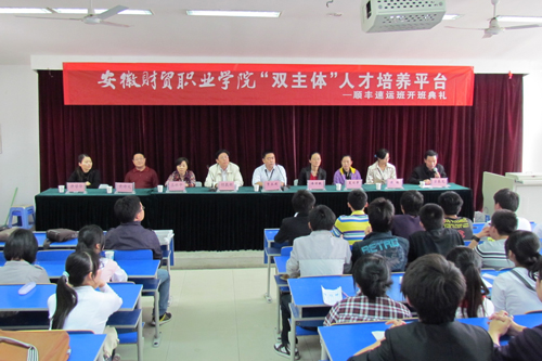5月25日,物流管理专业“双主体 四合作”人才培养平台——顺丰速运班揭牌暨开班典礼在学院隆重举行,顺丰速运集团公司安徽分公司总经理贾永健与学院胡戴新副院长为顺丰速运班揭牌,并共同签署校企合作意向书,标志着物流管理专业“双主体,四合作”人才培养模式改革取得了又一个阶段性成果。