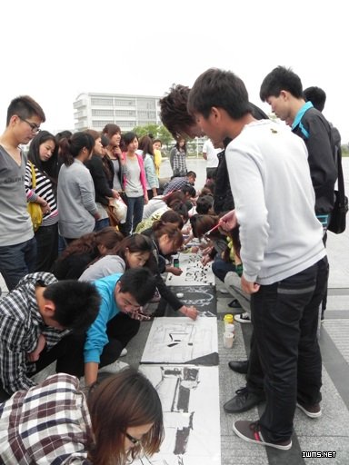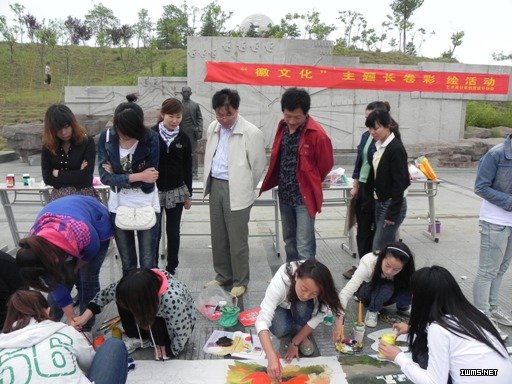 在第八届校园文化艺术节“传承徽商文化”的主题指引下,5月11日下午,艺术设计系创意设计协会在学院文化广场集体绘制一幅长30多米的“徽文化”长卷。
