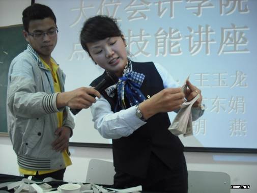 4月19日中午,大位会计学院特邀建行合肥分行金寨南路支行王玉龙行长、苏东娟经理、胡燕经理在5202教室讲解点钞知识与技能。学生处薛卫敏处长、张伟副处长,大位会计学院吴榕副院长、姚云霞副院长应邀出席。讲座由姚云霞副院长主持。