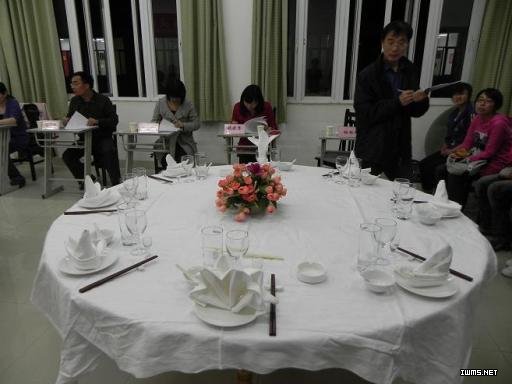 在旅游管理系首届中餐宴会摆台技能竞赛决赛中,酒店0902班李力、酒店0902孙桂超、酒店0901班邱心瑞位列前三。
