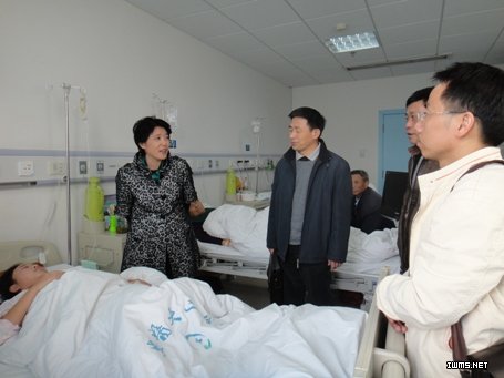11月11日下午,电子信息系主任刘力、党总支书记程众前往安医二附院,看望慰问因病住院的能源0901班张兰兰同学,并送去师生捐款16348元。程众书记鼓励张兰兰同学要坚强面对疾病和困难,珍爱生命,积极治疗,重返校园。